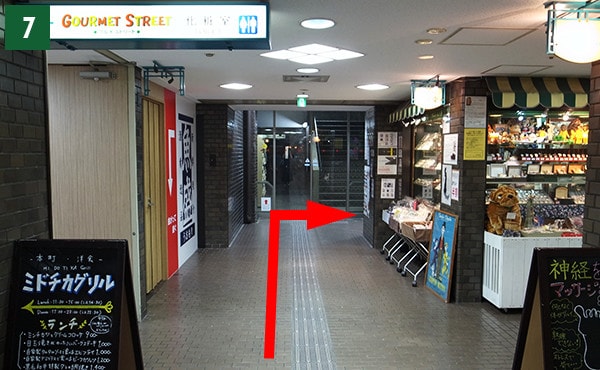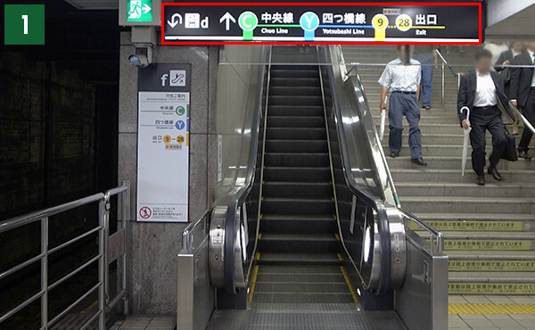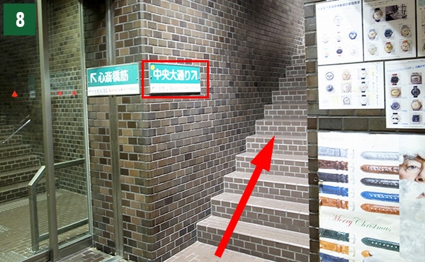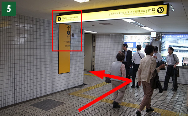 出口⑨⑩と書いてるほうへ左に曲がります。