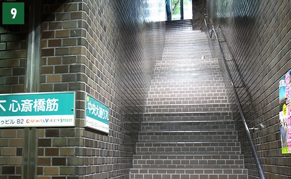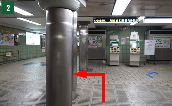 御堂筋線「本町」駅ホームの⑨番出口方面
