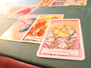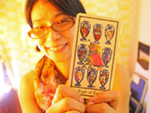 「タミ」では、3種類のタロットカードを使っています。お客様のイメージや占う内容など、その人に合うカードをインスピレーションで選びます。カードの上に手を置いて『夢が叶って成功するか』を強くイメージして下さい。
